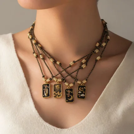 Doyours – Collana tarocchi rettangolare con Sole, Luna e Stelle in acciaio inox placcato oro 18K Un gioiello carico di