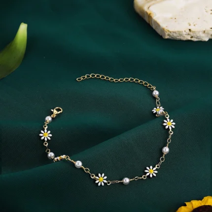 Doyours – Cavigliera con margherite e catena di perle fatta a mano Romantica e delicata, questa cavigliera con fiori di