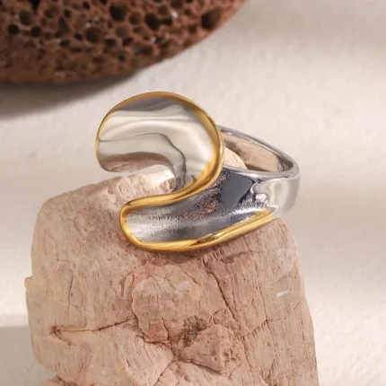 Doyours – Anello geometrico intrecciato bicolore in acciaio inox placcato oro 18K Un accessorio unico che unisce linee moderne e