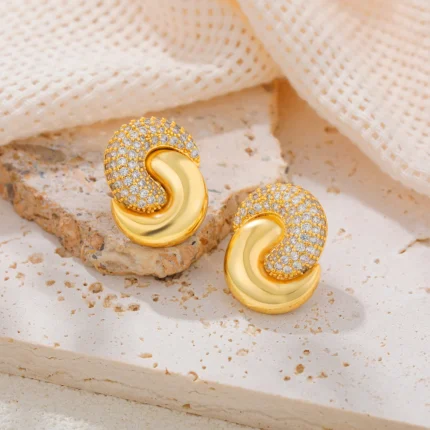 Doyours – Orecchini a onda placcati oro con zirconi cubici geometrici