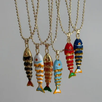 Doyours – Collana con ciondolo pesce smaltato colorato placcata oro