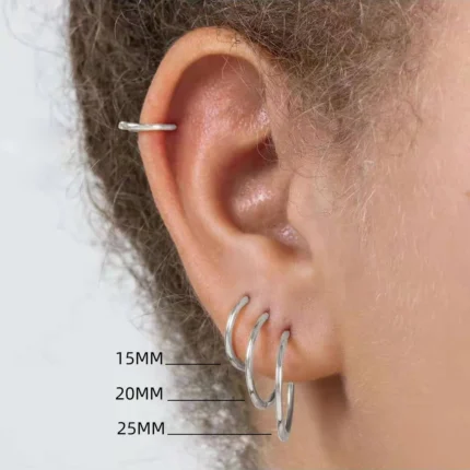 Questo set di orecchini a cerchio in acciaio inossidabile comprende 3 paia di diverse dimensioni, ideali per lobi e cartilagine.