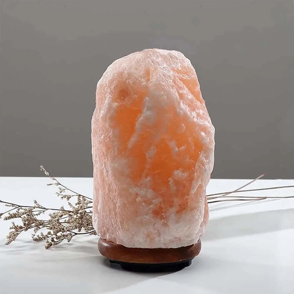 Lampada di sale Himalaya USB con base in legno