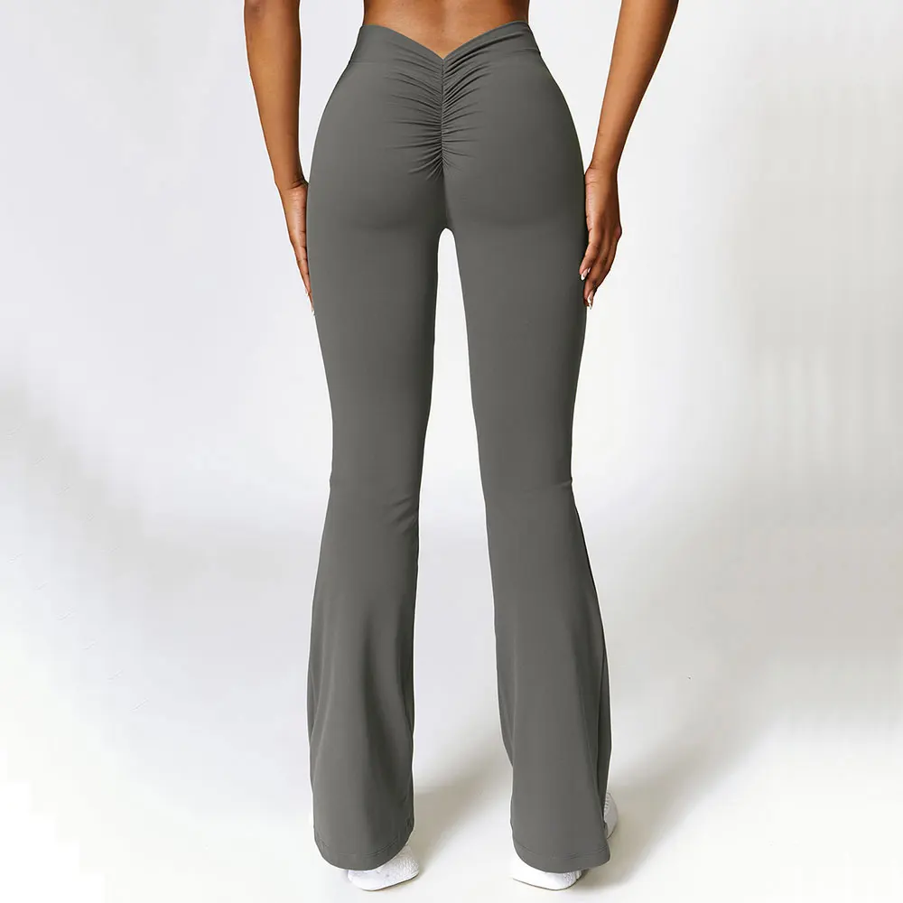 Leggings sportivi da donna a vita alta, con gamba svasata, pensati per yoga, palestra e attività fitness. Il tessuto elasticizzato senza cuciture offre comfort e libertà di movimento, mentre l’effetto push up valorizza la silhouette.