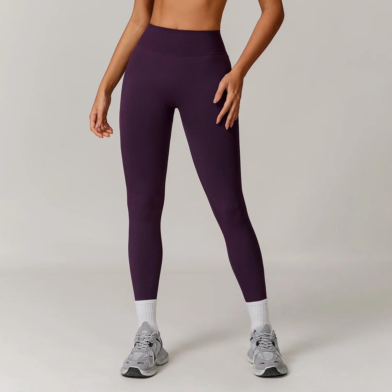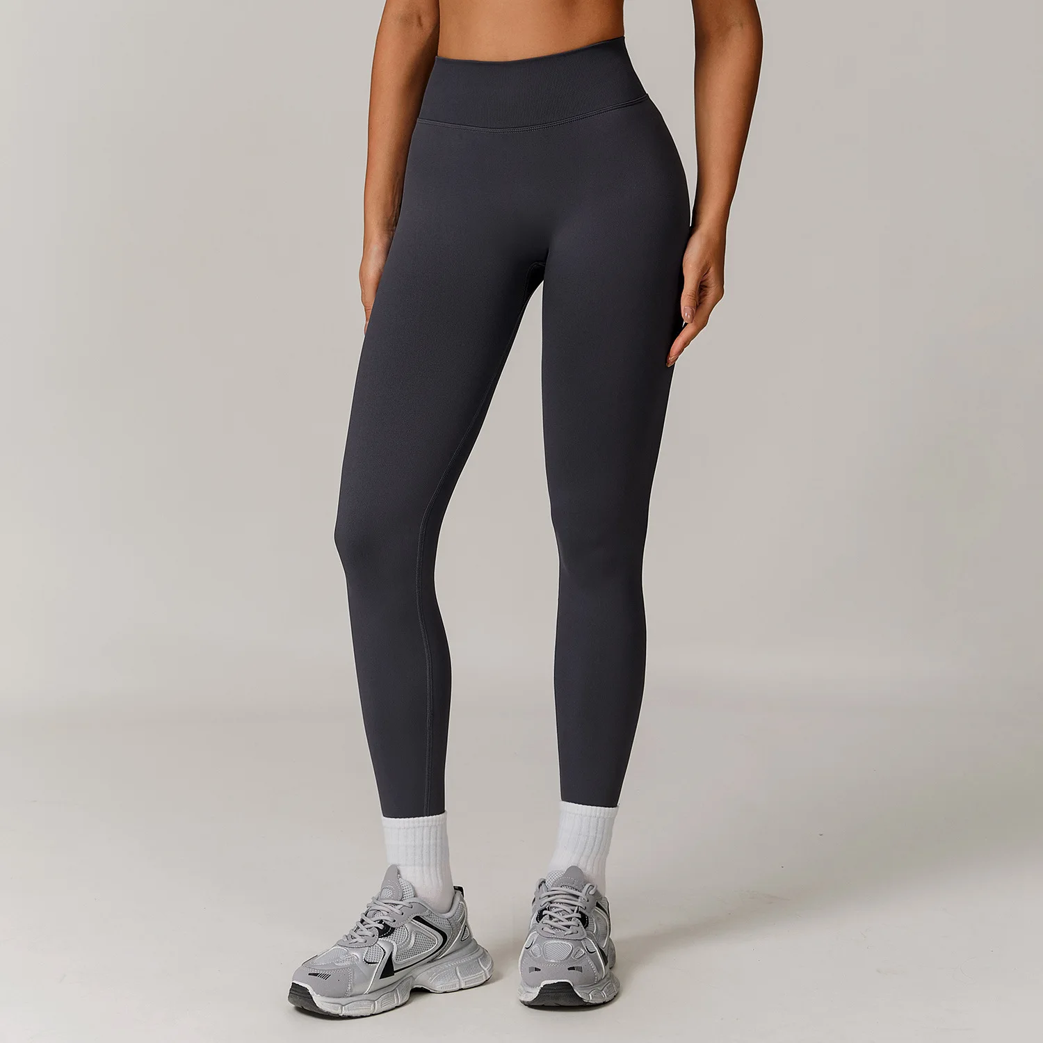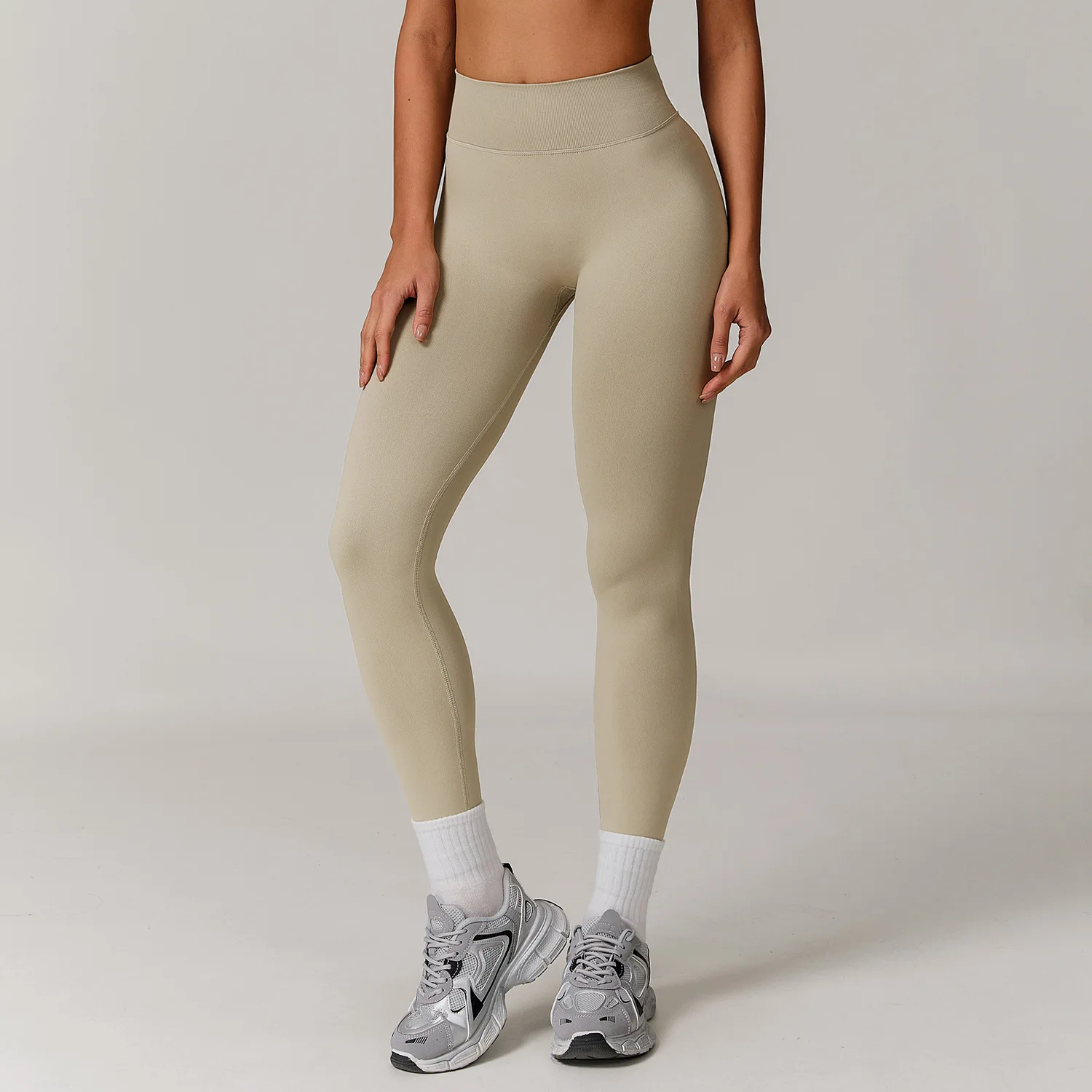 Leggings sportivi da donna senza cuciture, super elastici e a vita alta, ideali per yoga, palestra e corsa. Il design push up valorizza la figura offrendo sostegno e comfort durante ogni allenamento.