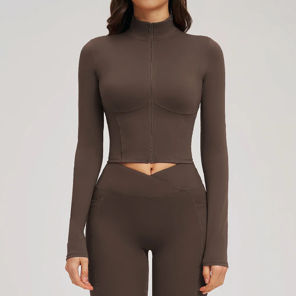 Top sportivo donna a maniche lunghe push up per palestra e yoga