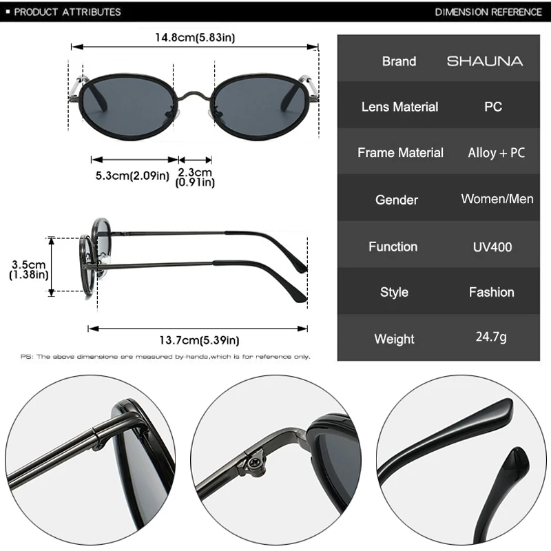 Gli occhiali da sole ovali piccoli retrò UV400 unisex uniscono stile vintage e protezione per gli occhi in un accessorio compatto e leggero. Ideali per un look urbano originale, sono perfetti sia per uomo che per donna.