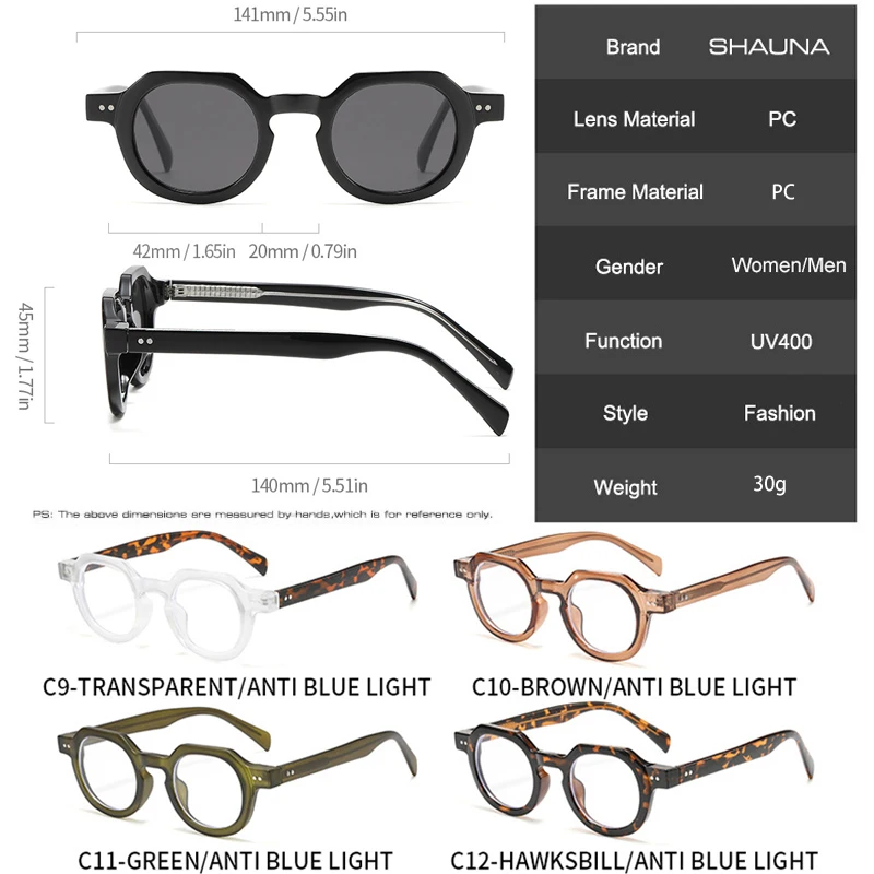 Set di 8 occhiali da sole piccoli con montature nere e tartarugate, ideali per l’uso quotidiano, guida e feste. –