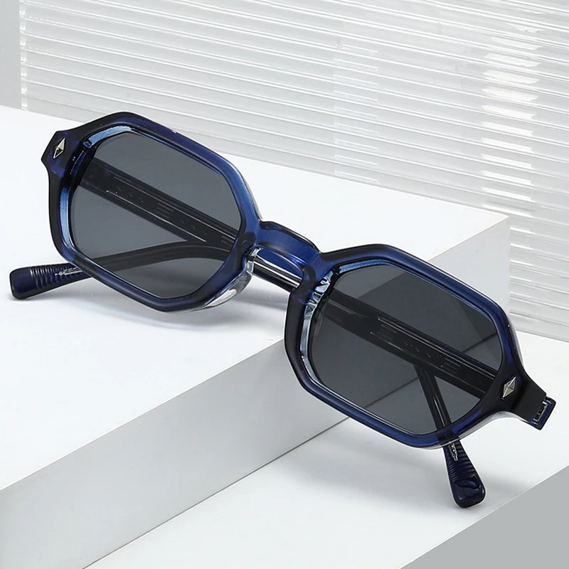 Occhiali da sole poligonali unisex con lenti sfumate UV400