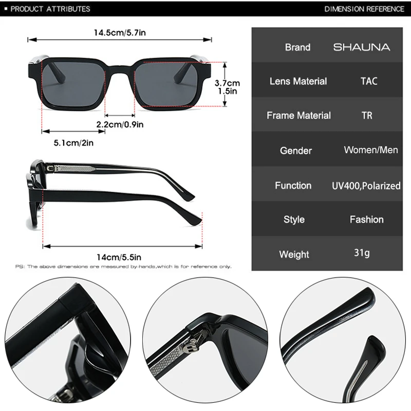 Gli occhiali da sole quadrati polarizzati unisex UV400 offrono protezione efficace per gli occhi con uno stile moderno e deciso. Le lenti polarizzate riducono i riflessi e migliorano la visibilità, ideali in città, alla guida o al mare.