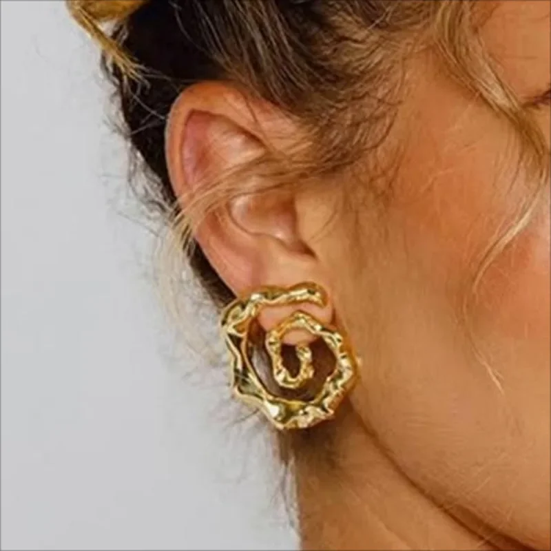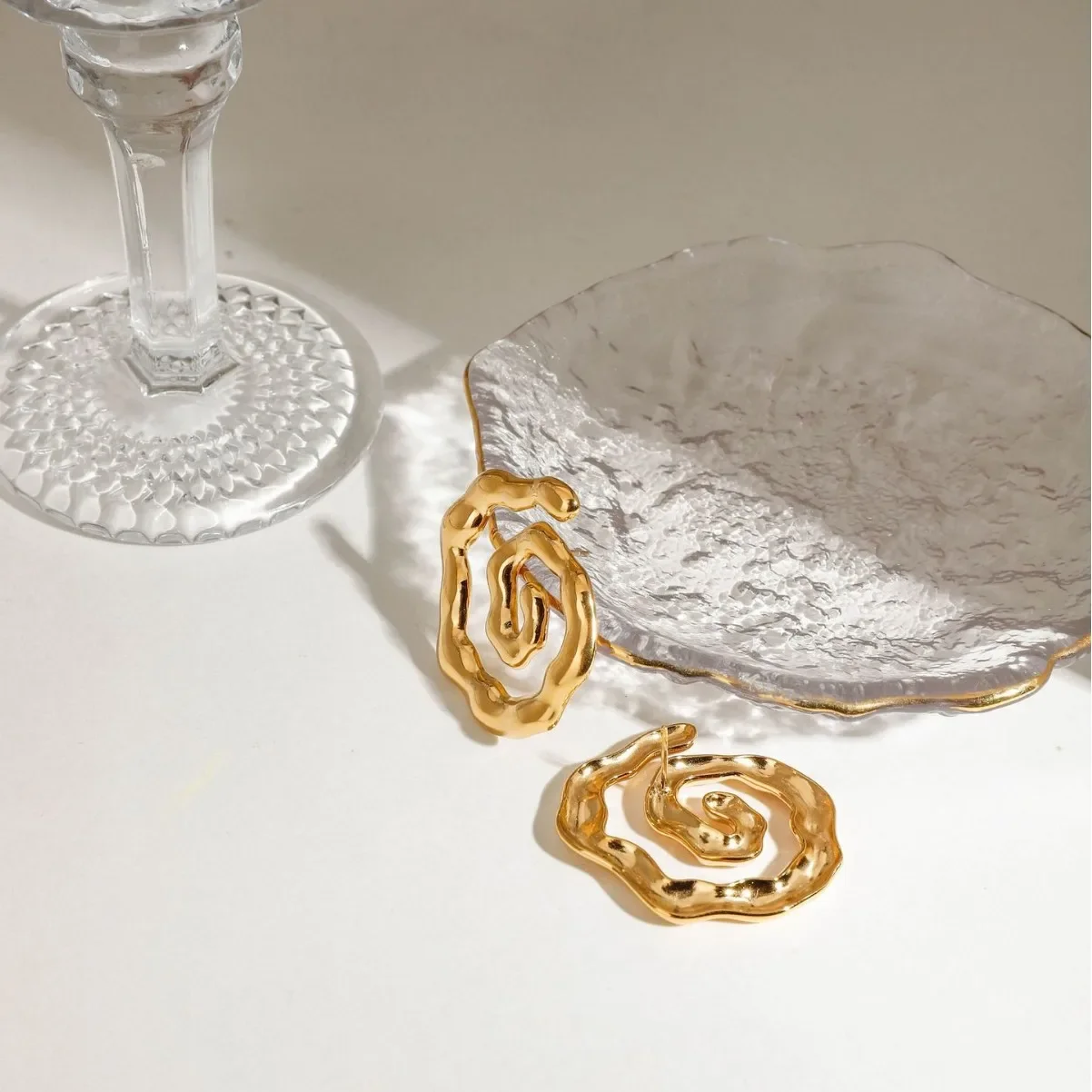 Gli orecchini a bottone donna onda twist sono gioielli minimalisti con design geometrico e finitura placcata oro 18K. Perfetti per l’uso quotidiano, uniscono stile discreto e originalità.