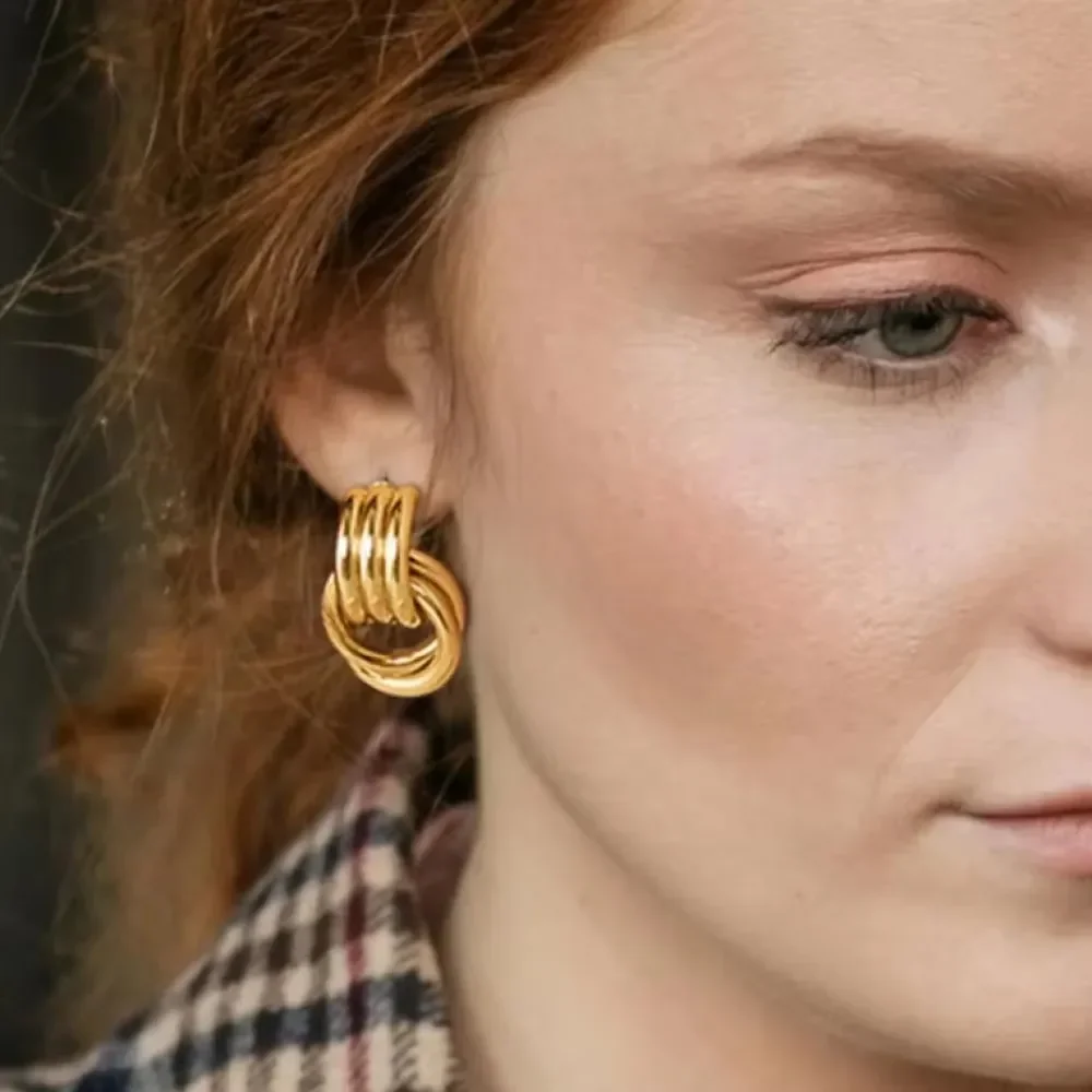Gli orecchini a bottone nodo multistrato in acciaio inox sono piccoli bijoux eleganti, ideali per l’uso quotidiano e le occasioni speciali.