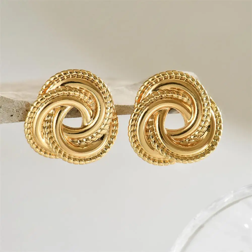 Gli orecchini a bottone nodo ruotato placcati oro 18 carati sono un accessorio moderno e discreto, ideale per completare look eleganti e quotidiani.