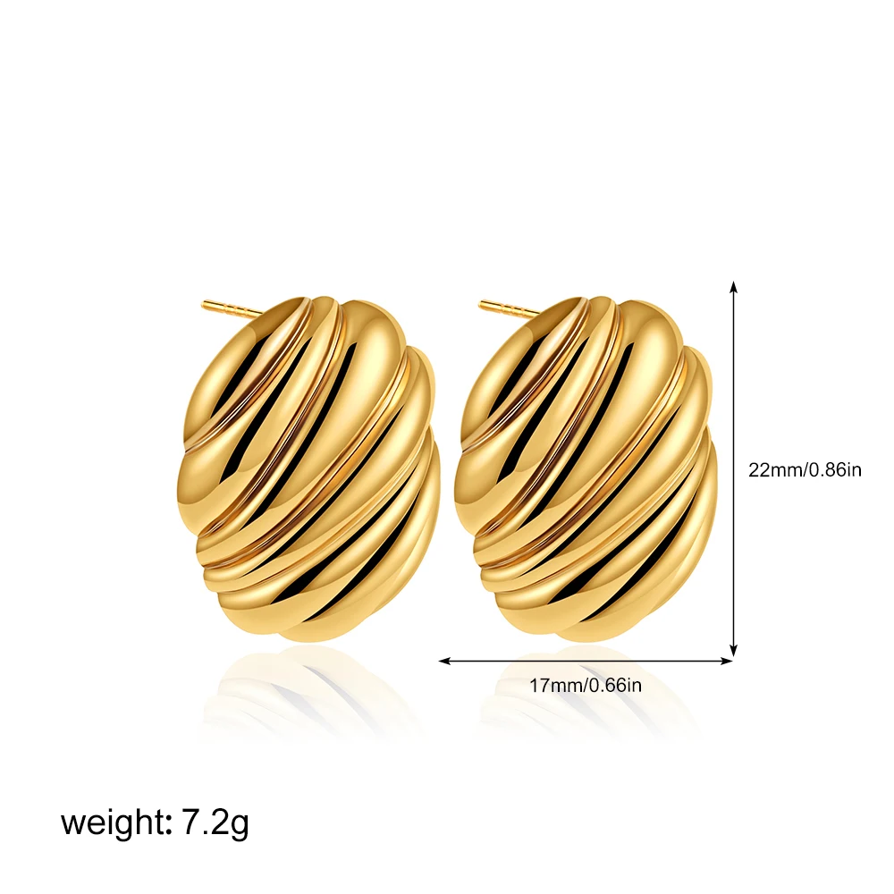 Gli orecchini a bottone ovali vintage in acciaio inox dorato sono piccoli gioielli dal design essenziale, ideali per l’uso quotidiano. La finitura lucida con texture a strisce dona un tocco elegante senza risultare troppo vistoso.