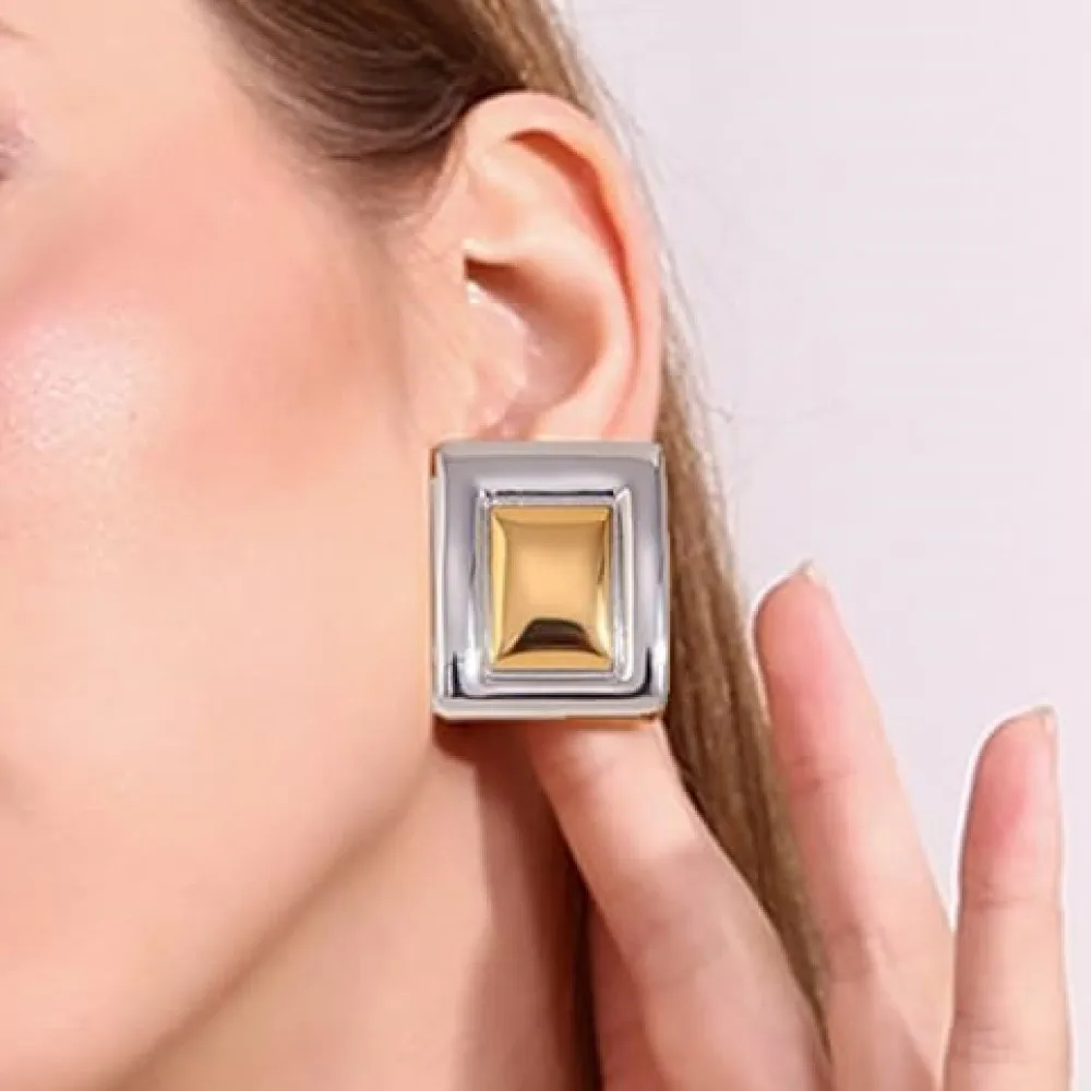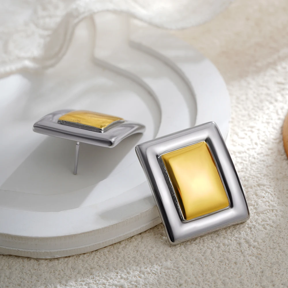 Gli orecchini a bottone rettangolari minimal in acciaio inox sono perfetti per un uso quotidiano discreto e moderno. La finitura lucida, in oro o argento, li rende versatili e facili da abbinare.
