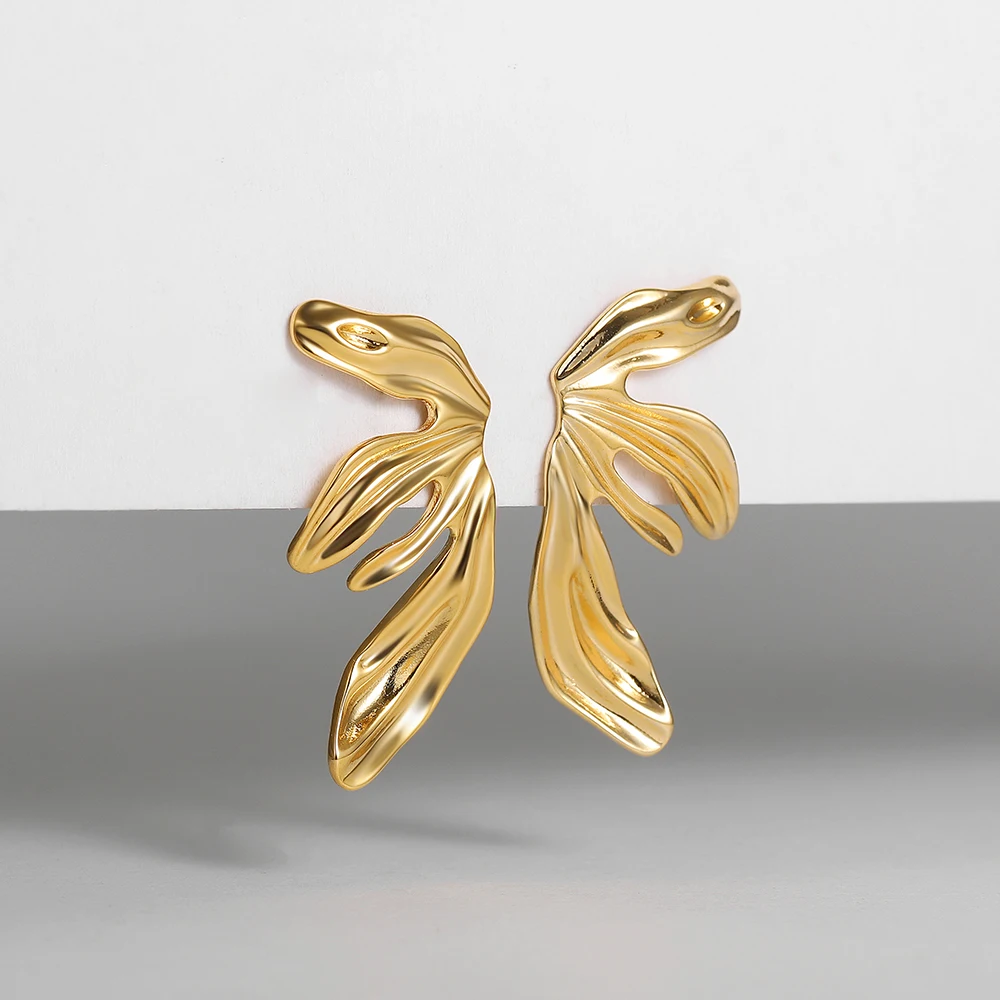 Gli orecchini a bottone vintage foglia di giglio in acciaio inox sono piccoli gioielli eleganti dal design irregolare e moderno.