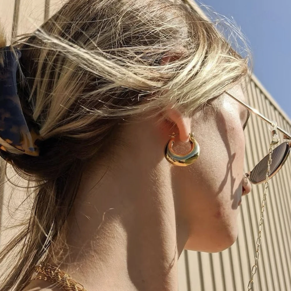Gli orecchini a cerchio dorati spessi in acciaio inox sono un accessorio dal carattere deciso, perfetto per valorizzare il viso in ogni occasione. Lo stile vintage li rende facili da abbinare sia a look casual che eleganti.