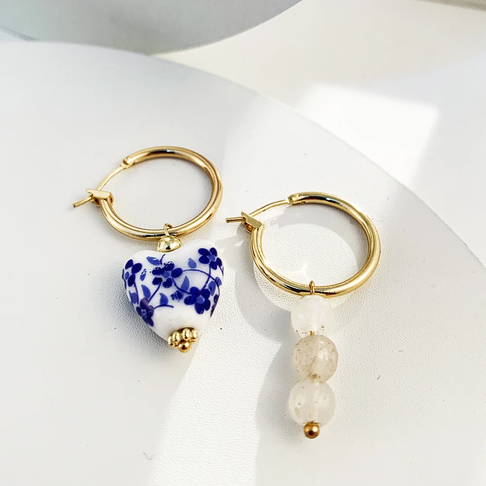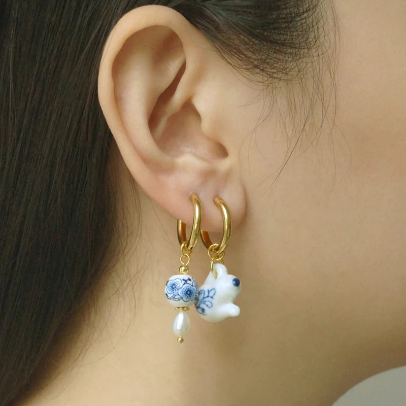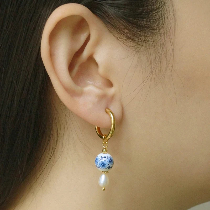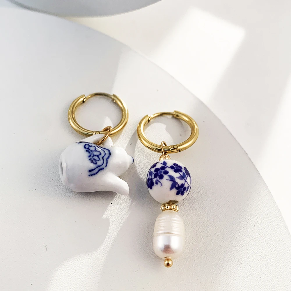 Gli orecchini pendenti asimmetrici con perline in ceramica sono un accessorio elegante dal tocco vintage, ideale per aggiungere personalità a qualsiasi look. Le perline rotonde con motivo floreale si abbinano a cerchi in acciaio inossidabile, leggeri e comodi da indossare ogni giorno.