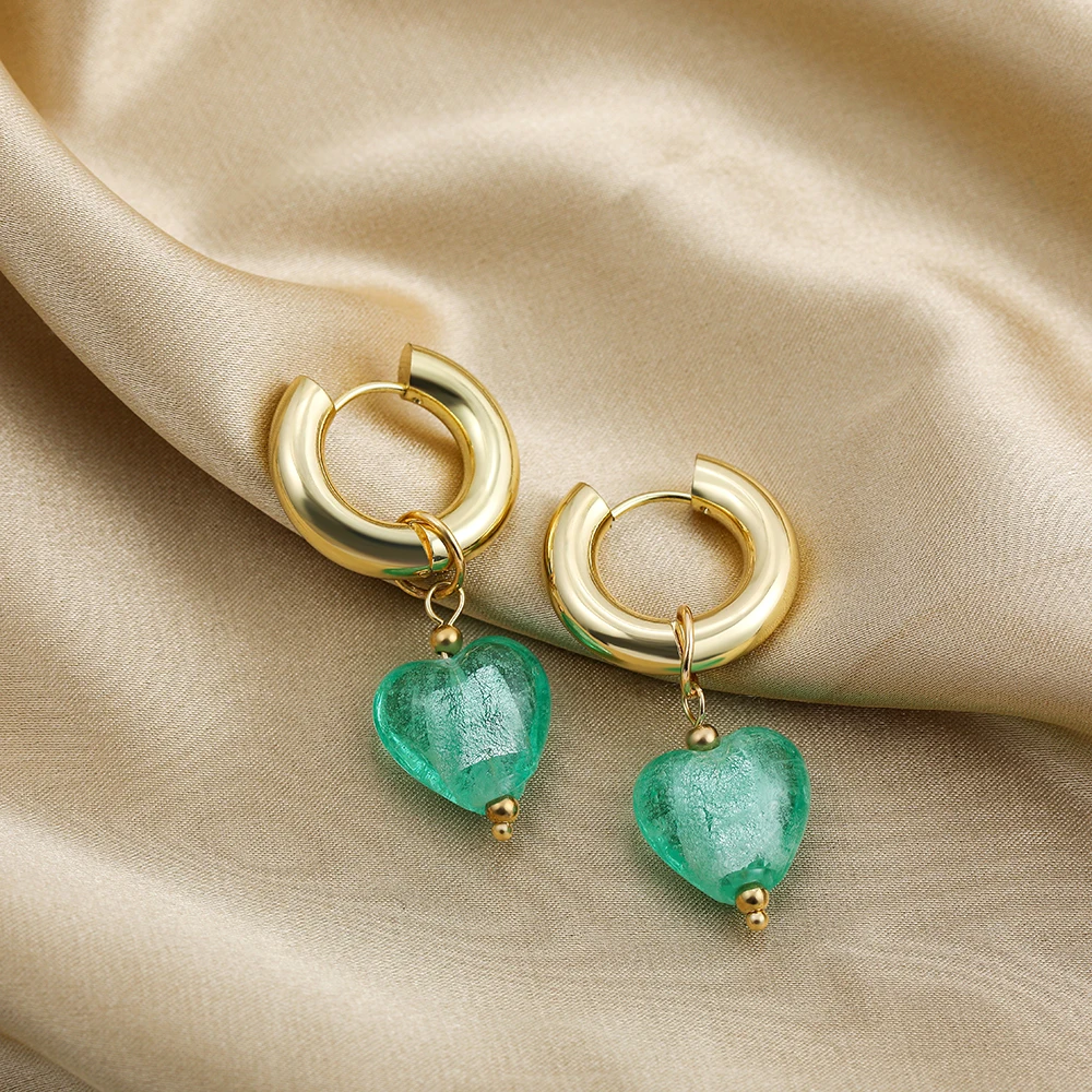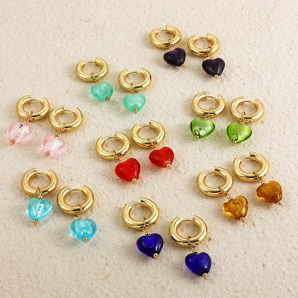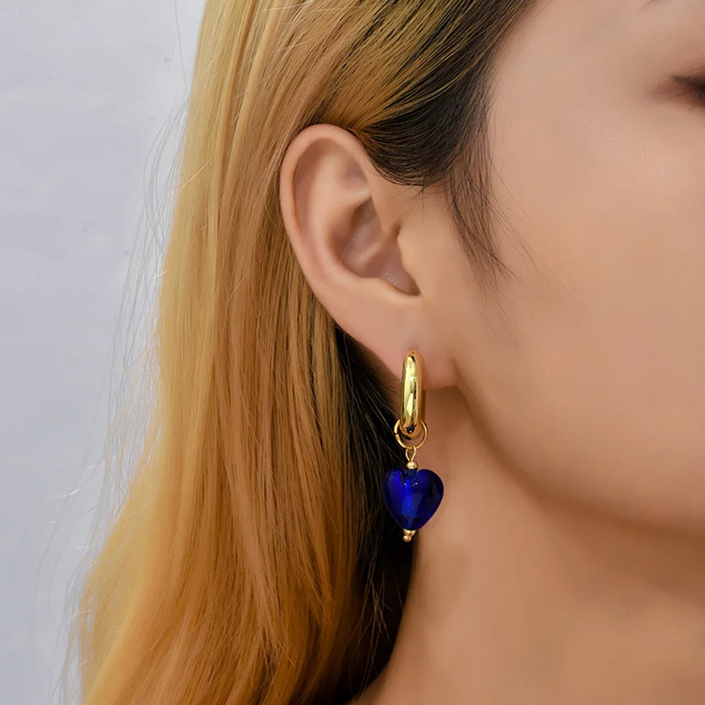 Gli orecchini pendenti cuore smaltato in acciaio inox oro aggiungono un tocco di colore a qualsiasi look quotidiano.