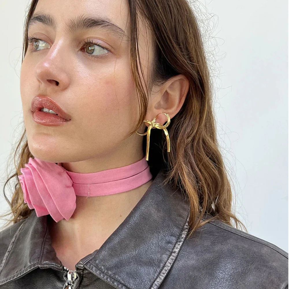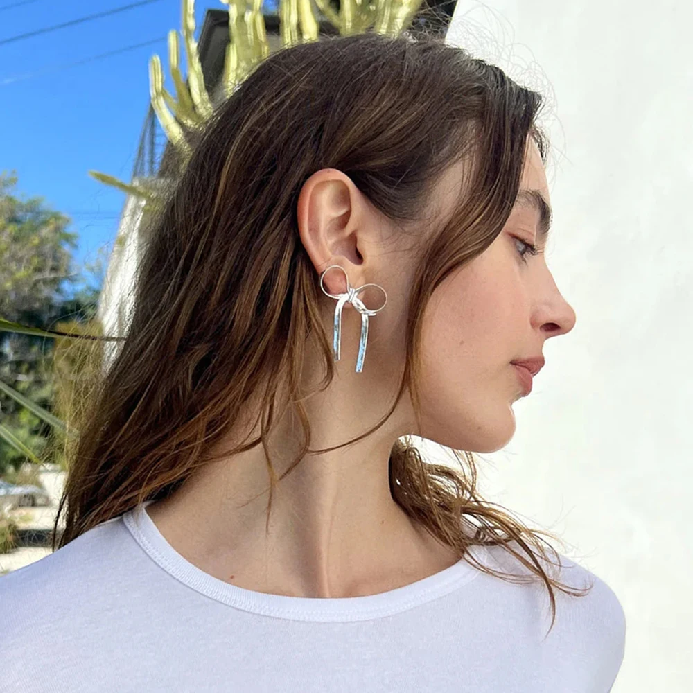Gli orecchini pendenti fiocco a catena lunga placcati oro aggiungono un tocco elegante e moderno a qualsiasi outfit, ideali per feste e occasioni speciali.