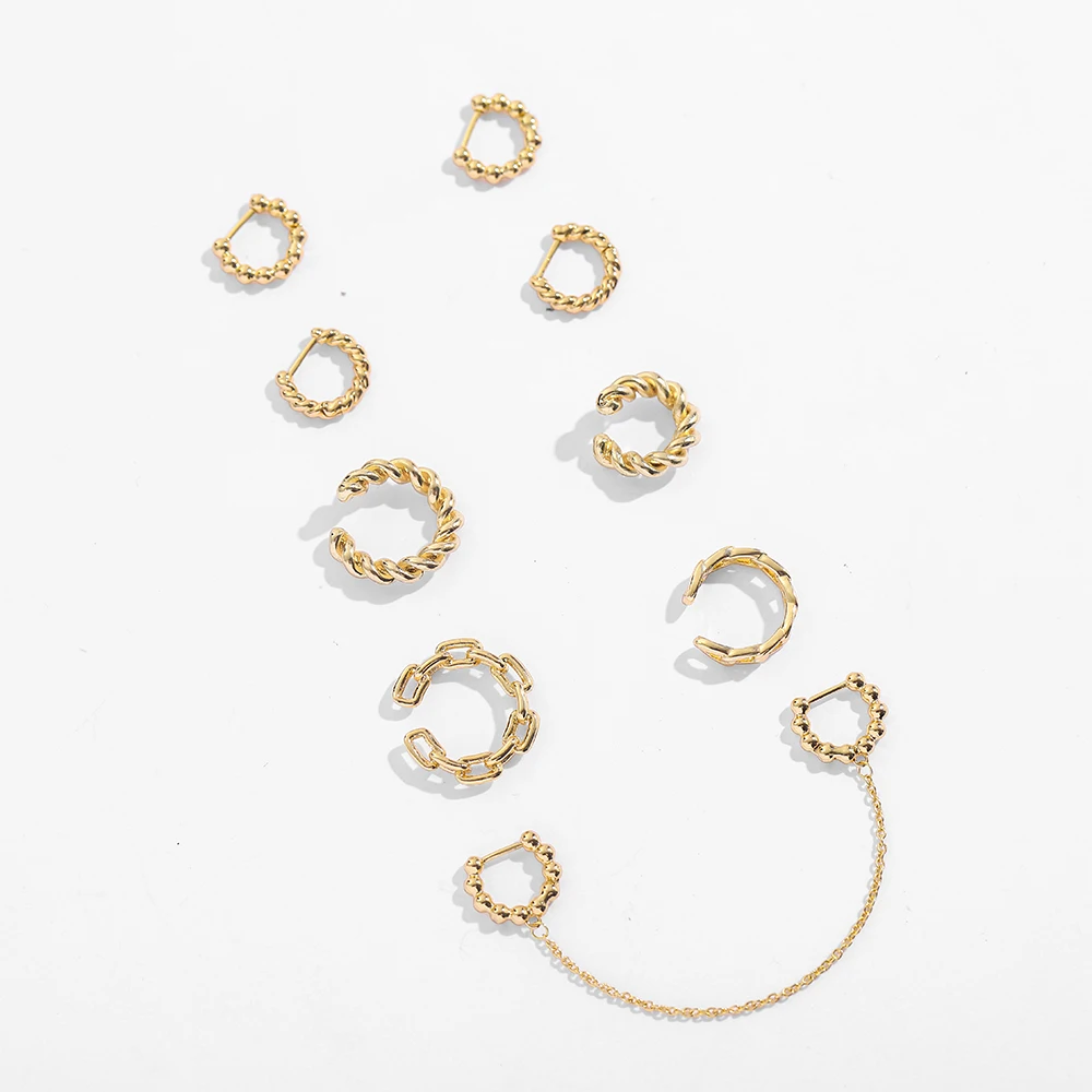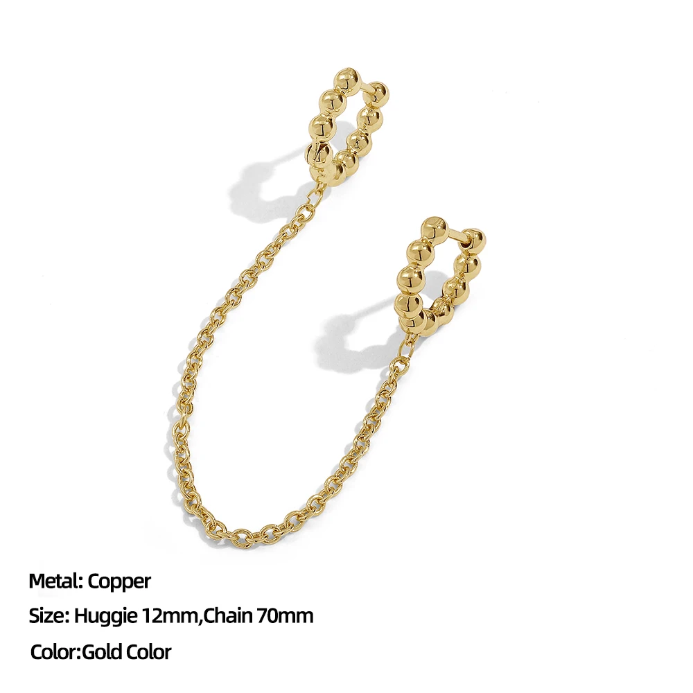 Questo orecchino a polsino oro con catene e perline metalliche si applica senza foro e dona un tocco moderno all’orecchio.