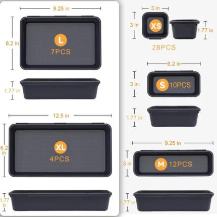 Set organizzatori per cassetti da scrivania 5 misure impilabili