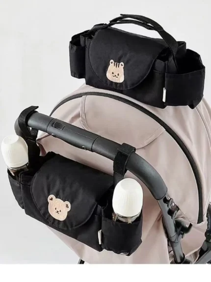 La borsa portaoggetti da passeggino con orsetto è pensata per tenere a portata di mano tutto il necessario durante le