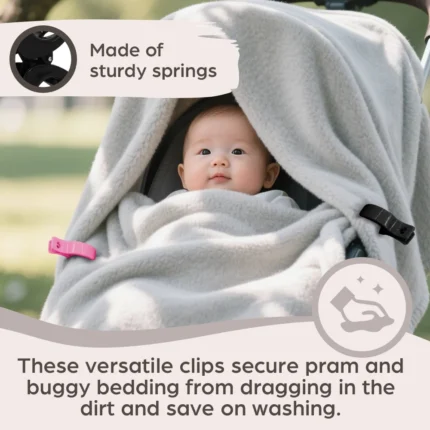 Le clip fermacoperte universali per passeggino tengono salda la coperta o il telo al passeggino o al marsupio, evitando che