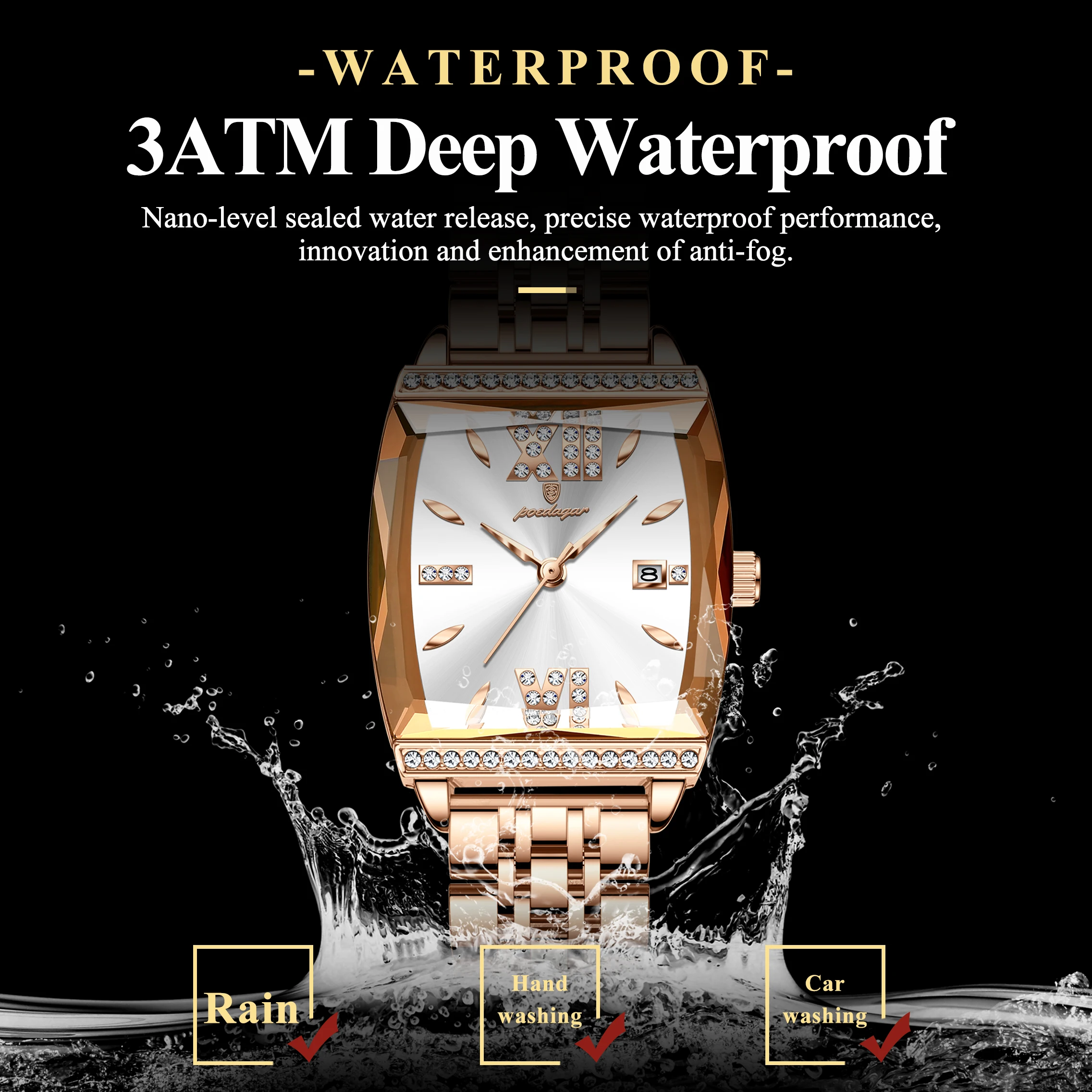 Consiglio d’uso: regola ora e datario tramite la corona laterale e rimuovi l’orologio per doccia, sauna o immersioni prolungate.