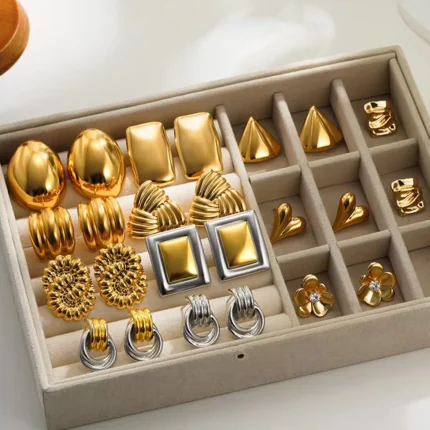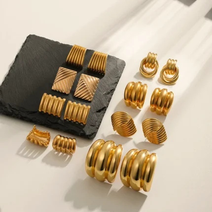 Gli orecchini a cerchio quadrati in acciaio dorato 18K sono gioielli minimal e versatili, ideali per l’uso quotidiano e le