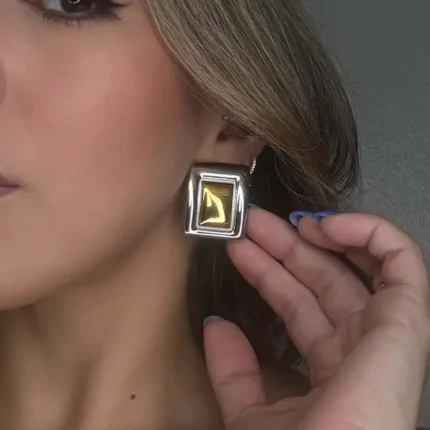 Gli orecchini retrò geometrici bicolore sono accessori versatili con forme quadrate, triangolari, a cuore e a fiore, pensati per un