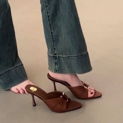 I sandali sabot eleganti da donna con tacco sottile sono l’ideale per cerimonie, feste e serate estive. Design a punta