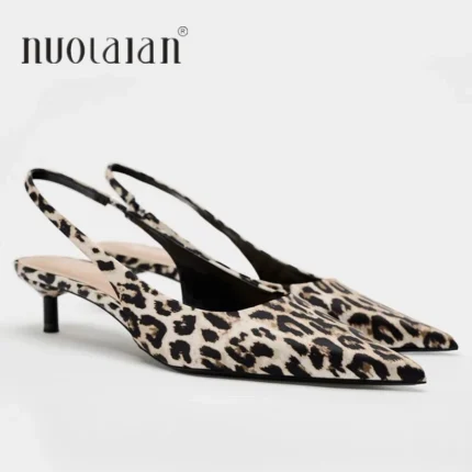 Sandali donna leopardati con tacco basso e punta a punta