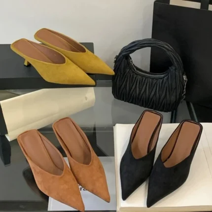 Le ciabatte eleganti da donna con tacco medio sottile sono perfette per feste, cerimonie e serate speciali. La punta affusolata