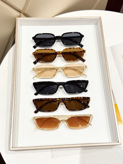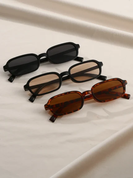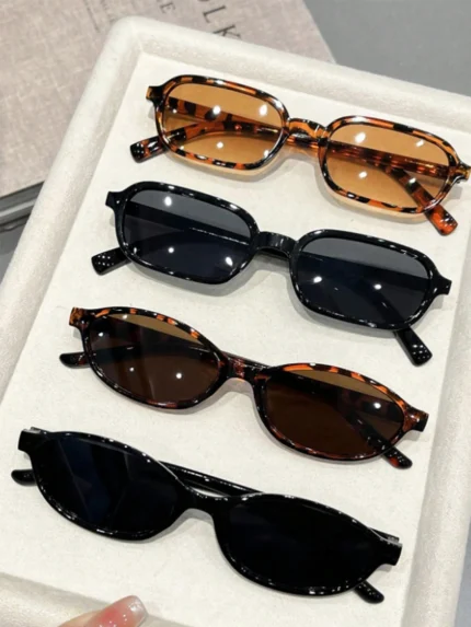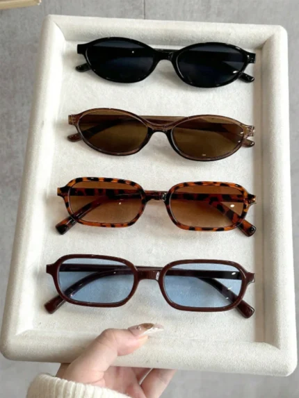Questo set di occhiali da sole retrò unisce montature piccole rettangolari e ovali, ideali per l’uso quotidiano e il pendolarismo.