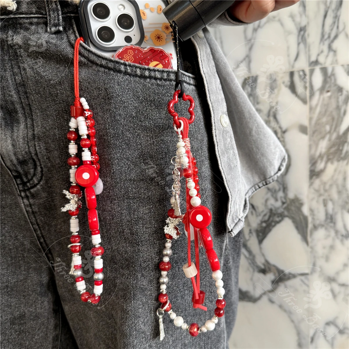 Il portachiavi per telefono fatto a mano con perline è un accessorio decorativo perfetto per personalizzare smartphone, borse e zaini.