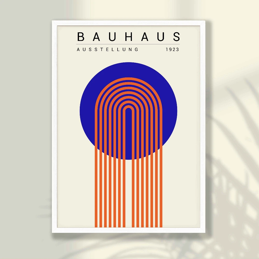 Questo poster Bauhaus arancione e blu è una stampa astratta su tela ideale per aggiungere un tocco moderno alle pareti di soggiorno, studio o camera da letto.