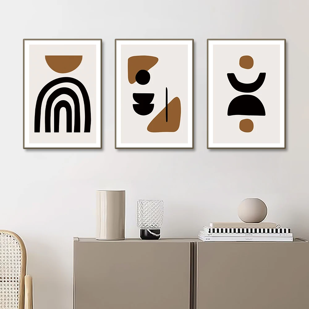 Questo poster astratto geometrico vintage marrone e nero è una stampa da parete ideale per soggiorno, studio o corridoio.
