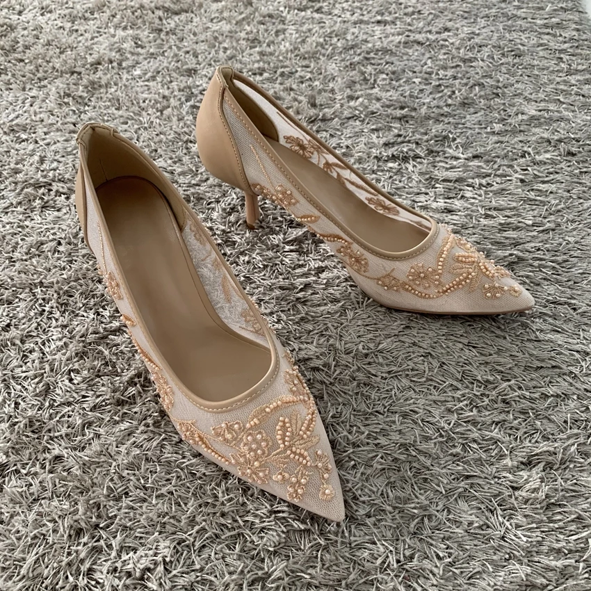 I sandali con tacco alto eleganti da donna sono pensati per cerimonie, matrimoni e occasioni speciali. Il design a punta affusolata con ricamo a rete e perline dona un tocco raffinato a ogni outfit.