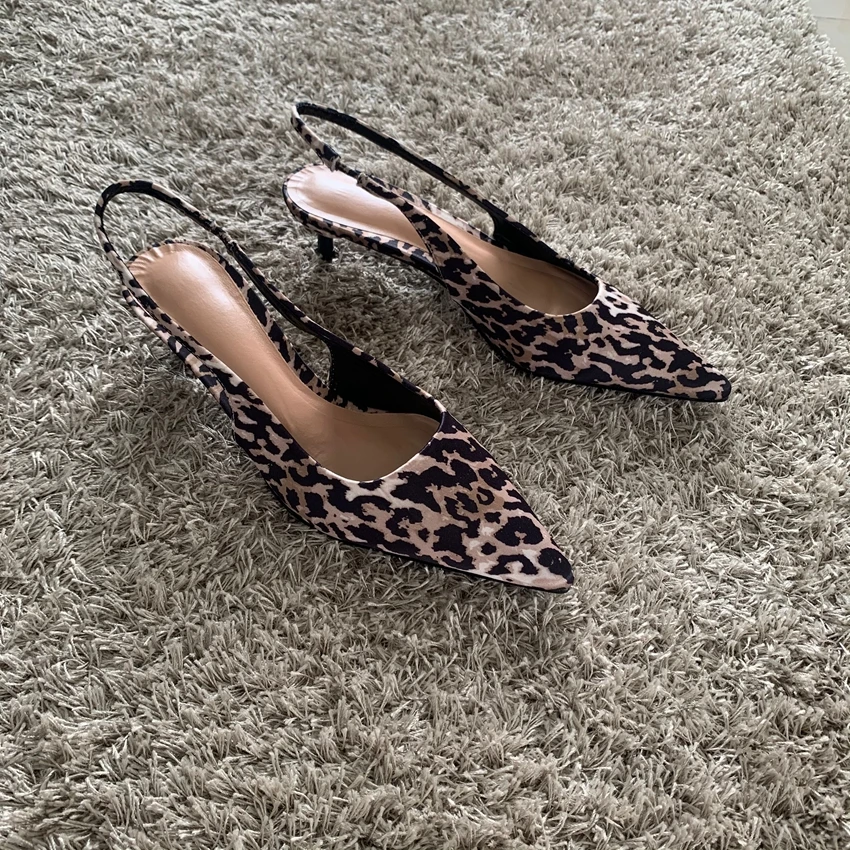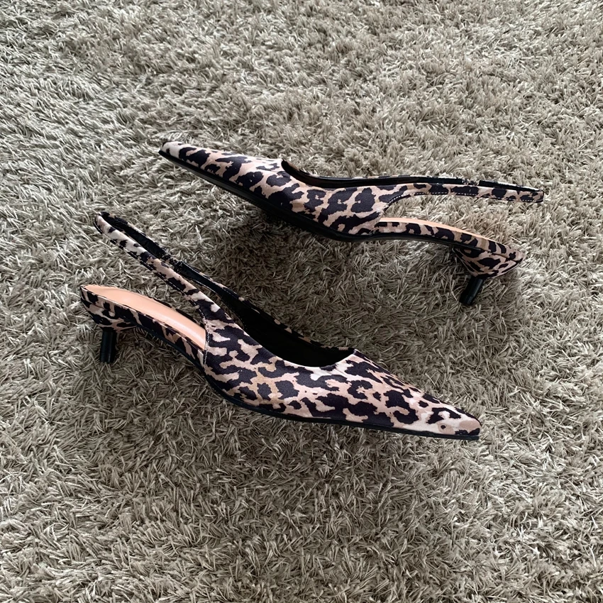 Sandali donna leopardati con tacco basso e punta a punta