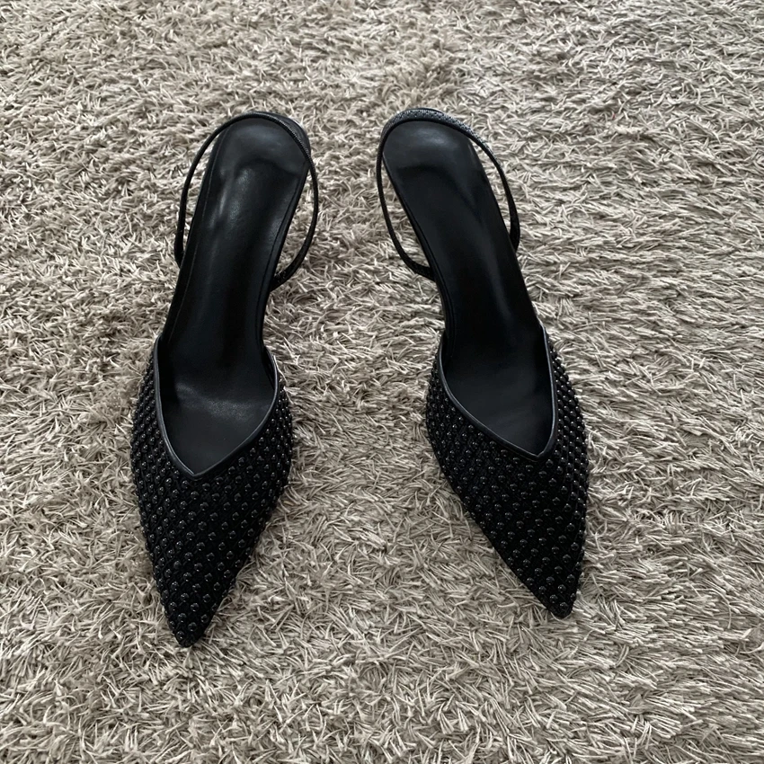 Sandali mesh con tacco a spillo e perline donna