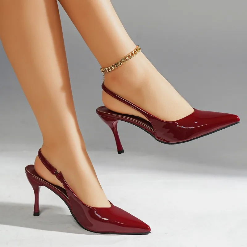 I sandali slingback a punta con tacco alto eleganti donna sono perfetti per cerimonie, serate e occasioni speciali. La punta affusolata slancia la figura, mentre il cinturino posteriore assicura una calzata stabile.