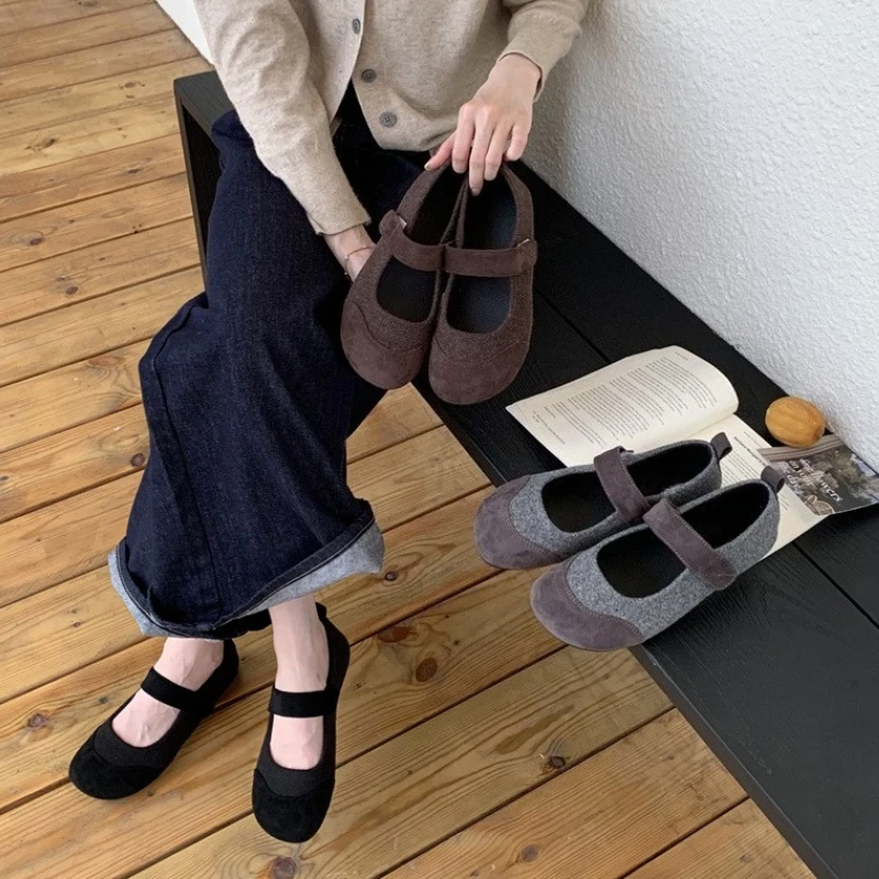 Le scarpe Mary Jane in lana donna stile vintage sono calzature basse e comode, ideali per l’autunno e l’inverno. La tomaia in tessuto di lana e la punta tonda offrono comfort quotidiano e un look retrò facile da abbinare.