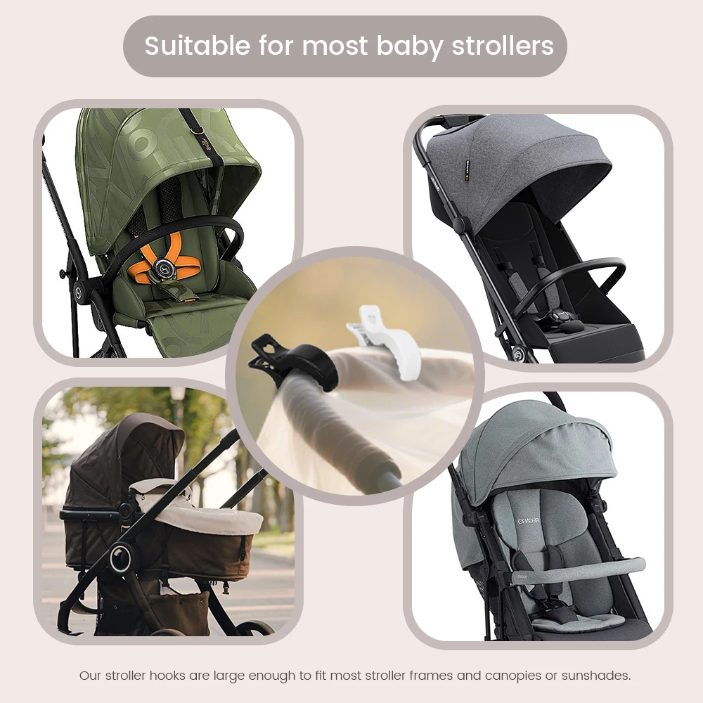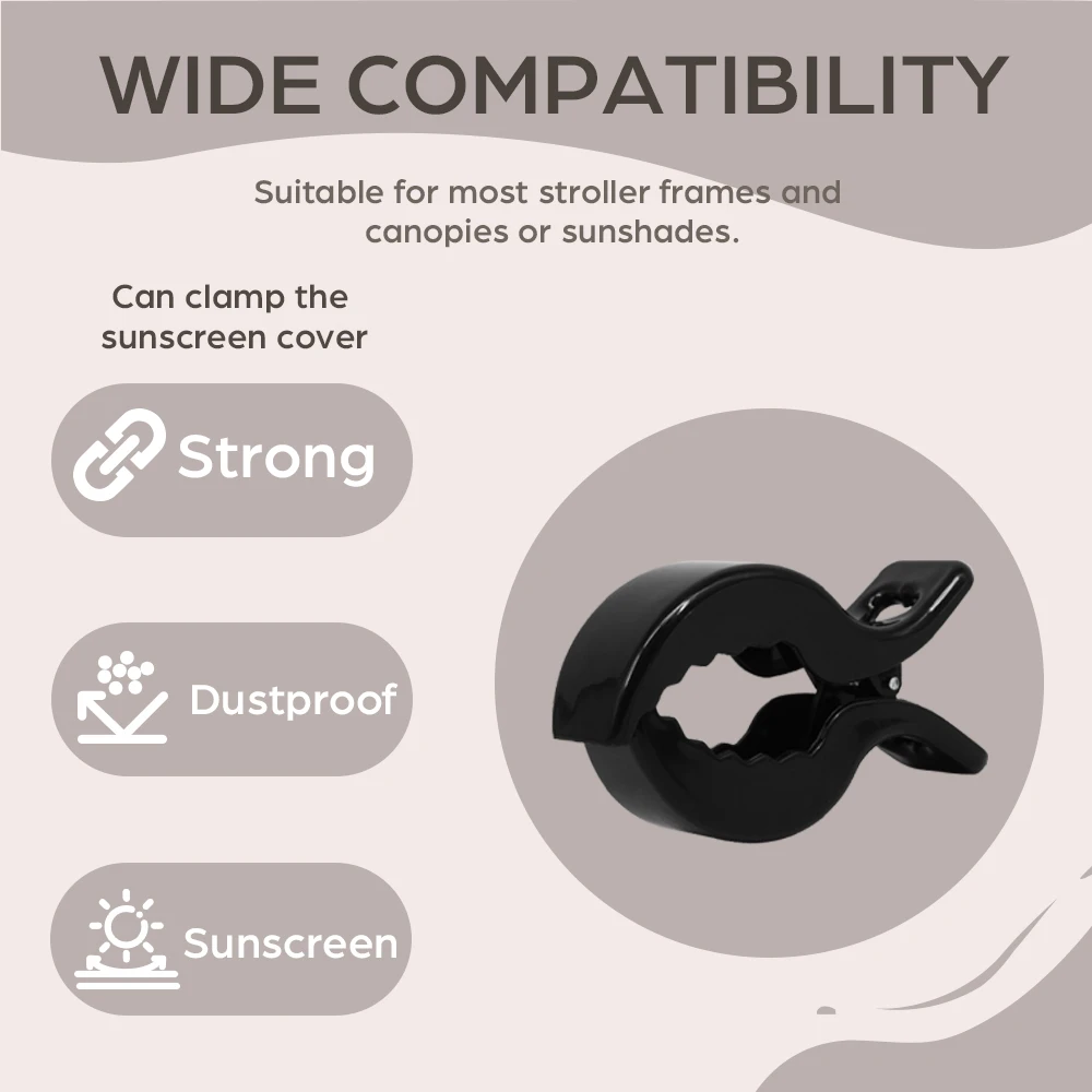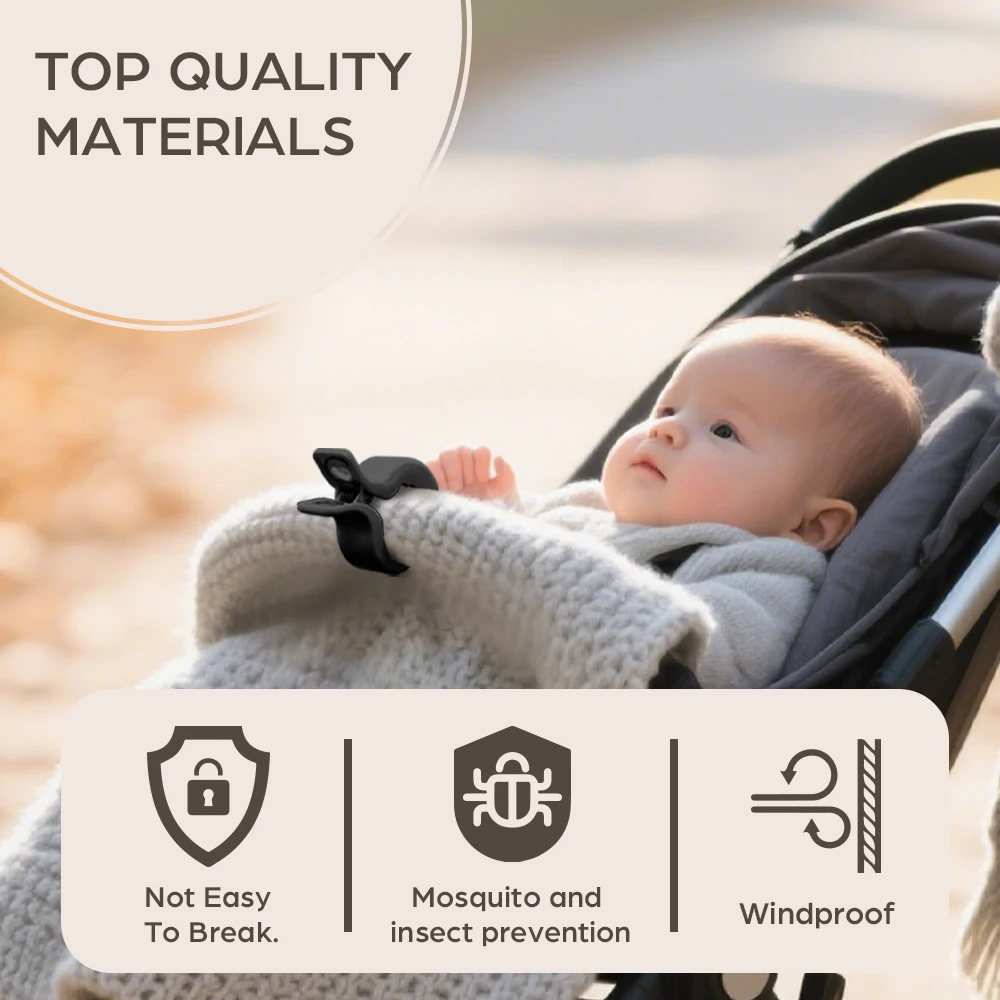 Consiglio d’uso: aggancia le clip al bordo della coperta e alla struttura del passeggino senza stringere eccessivamente il tessuto.