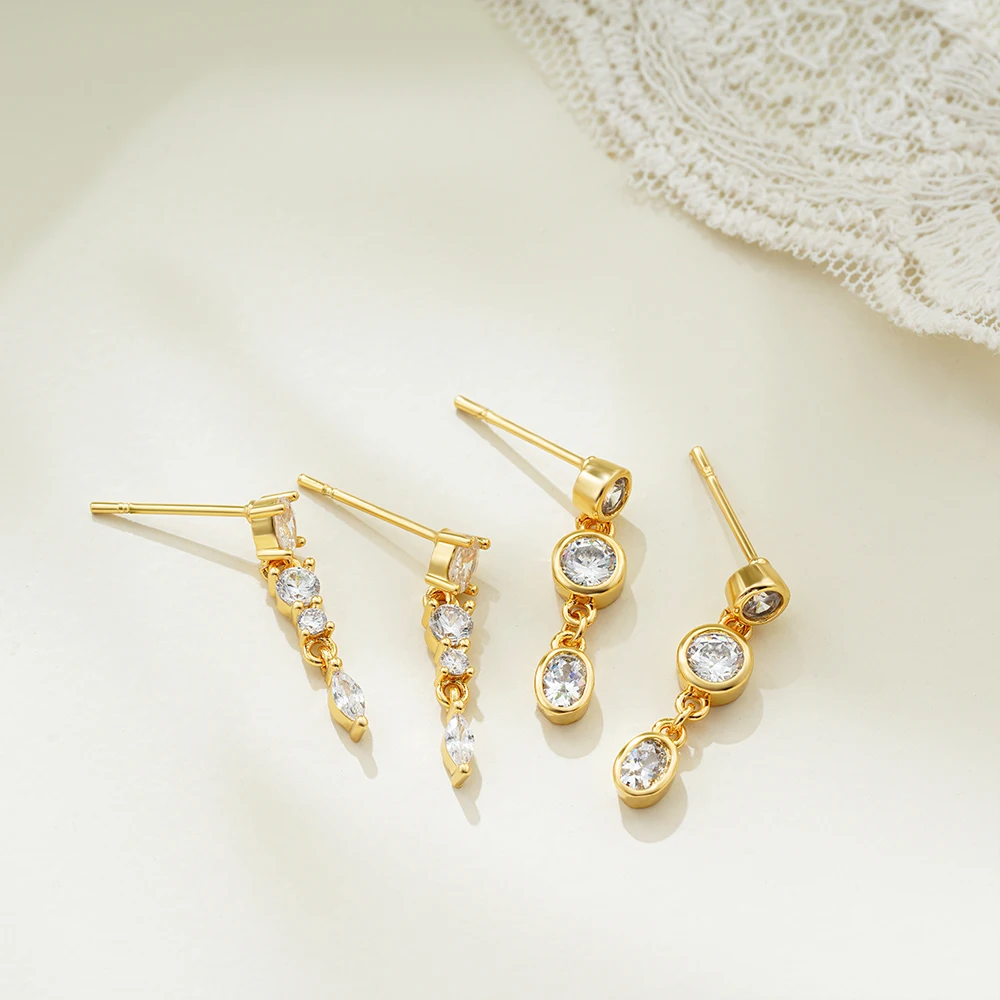 I 2 paia di orecchini a catena con zirconi cubici sono piccoli orecchini a lobo placcati oro 18 carati, perfetti per un look quotidiano elegante e discreto.
