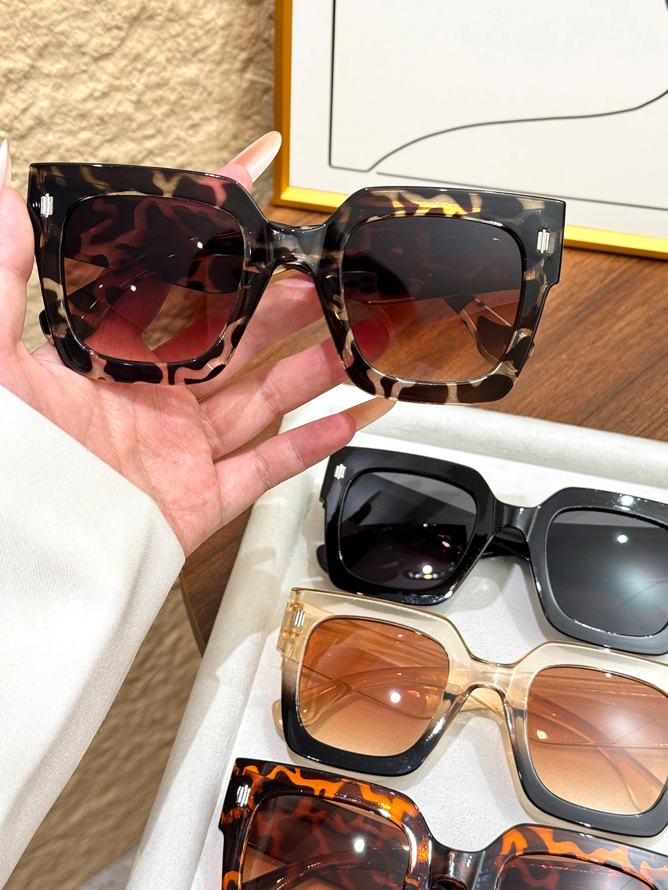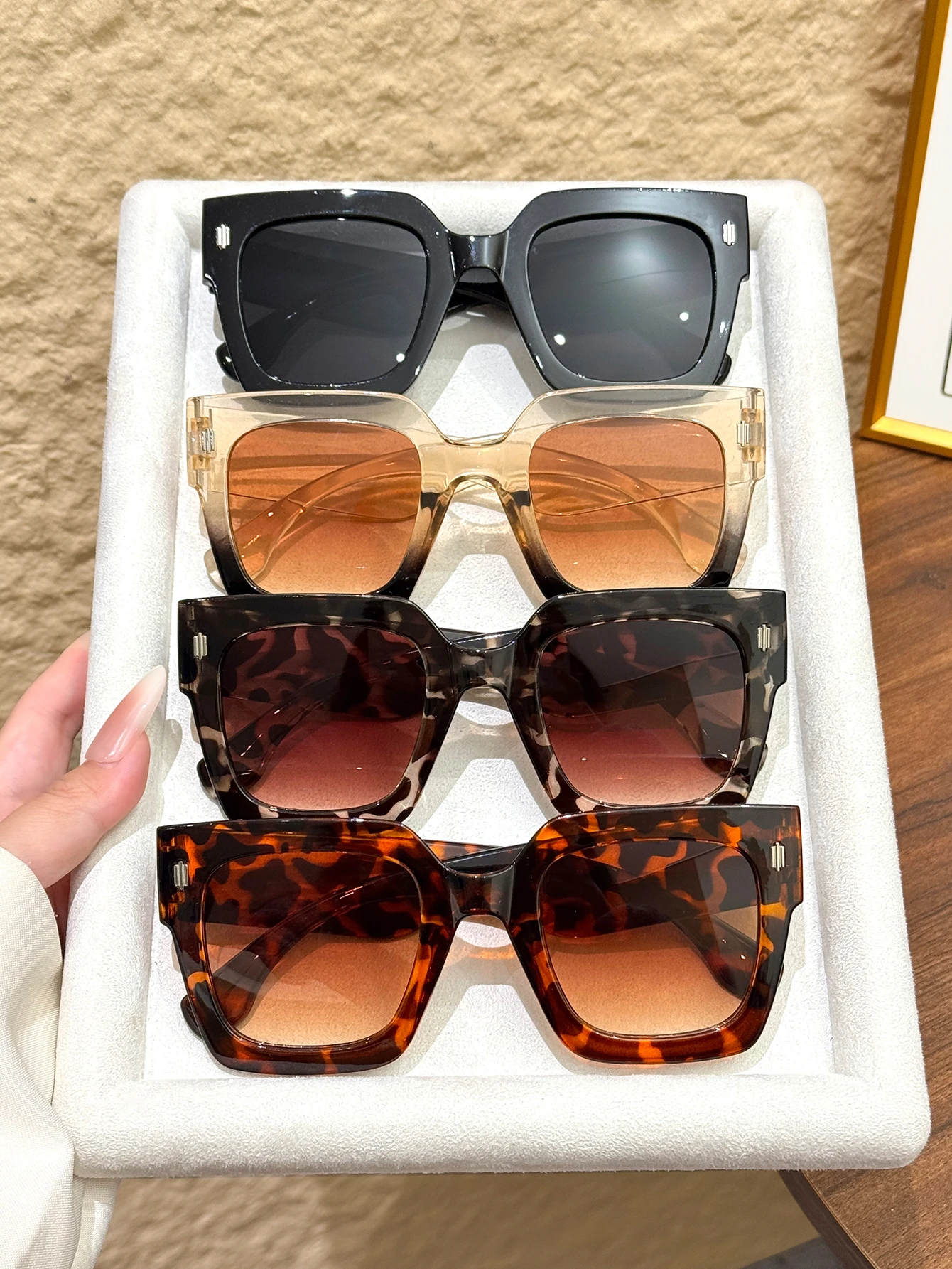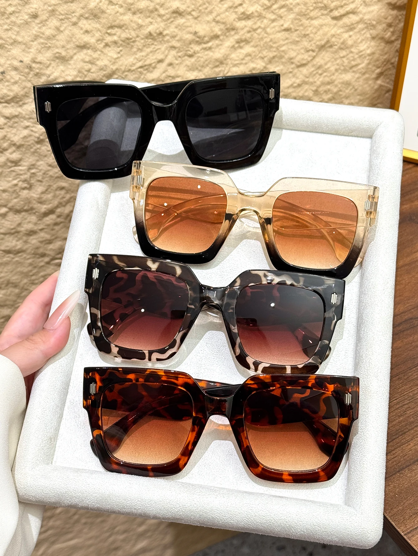 Il set 4 occhiali da sole quadrati oversize retrò offre uno stile moderno con linee geometriche decise, perfetti per completare look casual e più eleganti.