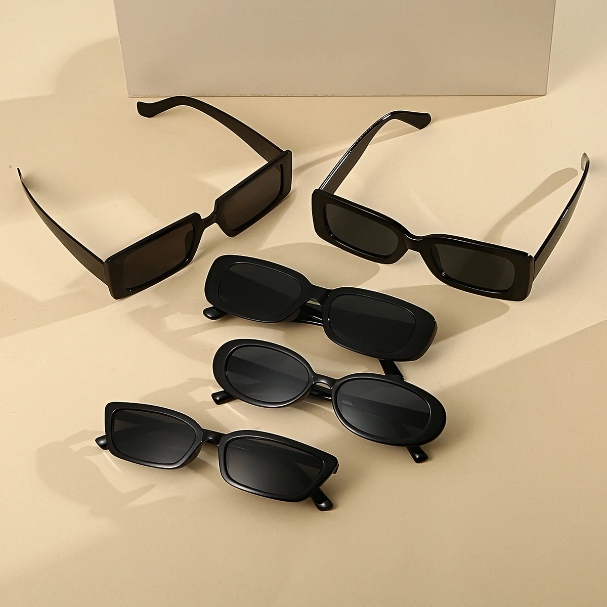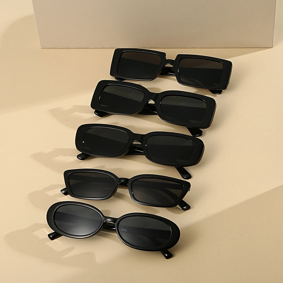 Il set 5 occhiali da sole donna neri offre modelli classici dal design europeo e americano, ideali per spiaggia e look street.