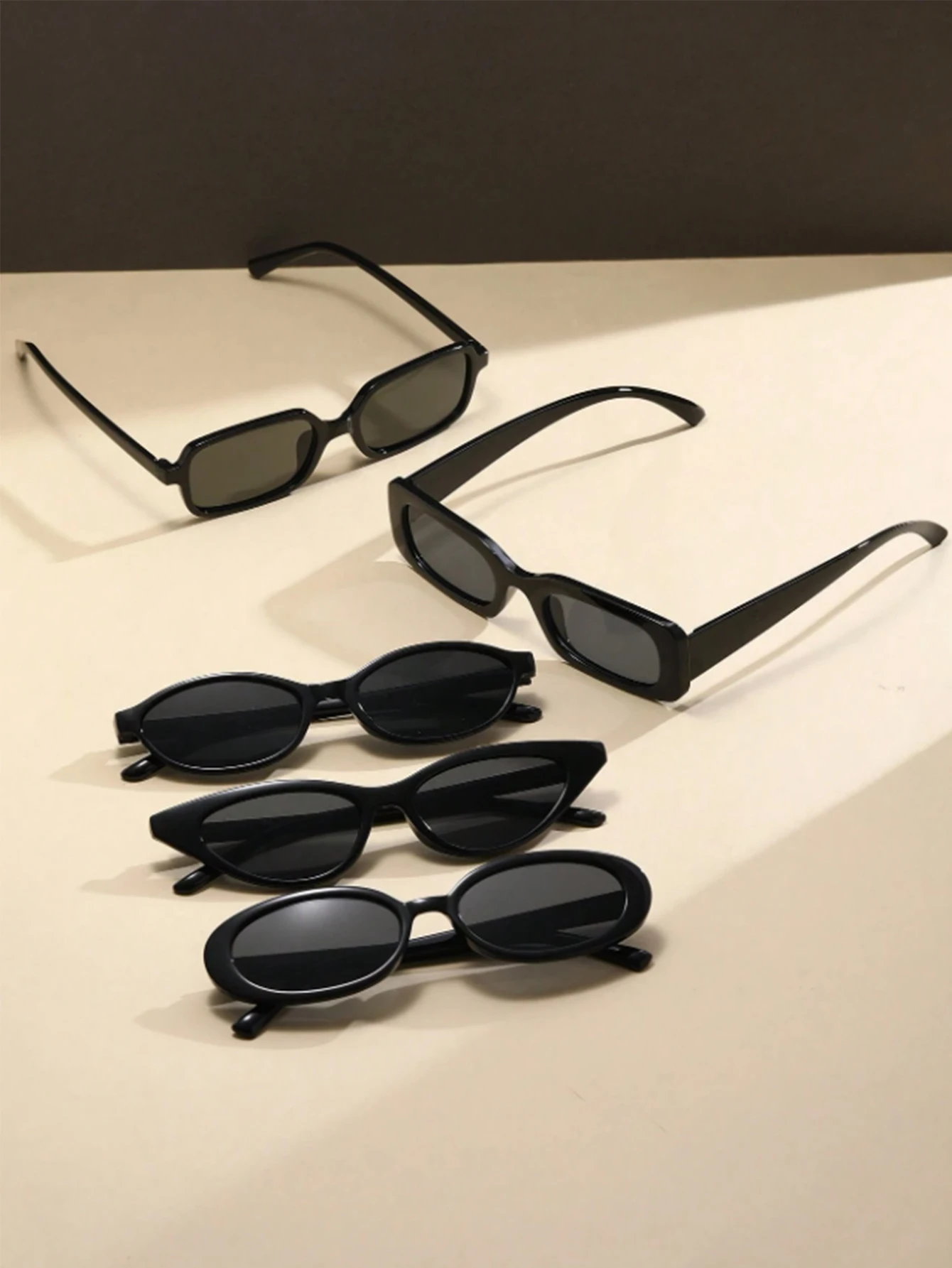 Il set occhiali da sole neri classici unisex include 5 modelli in tinta unita, ideali per l’uso quotidiano. Design semplice e versatile, si abbina facilmente a qualsiasi outfit.