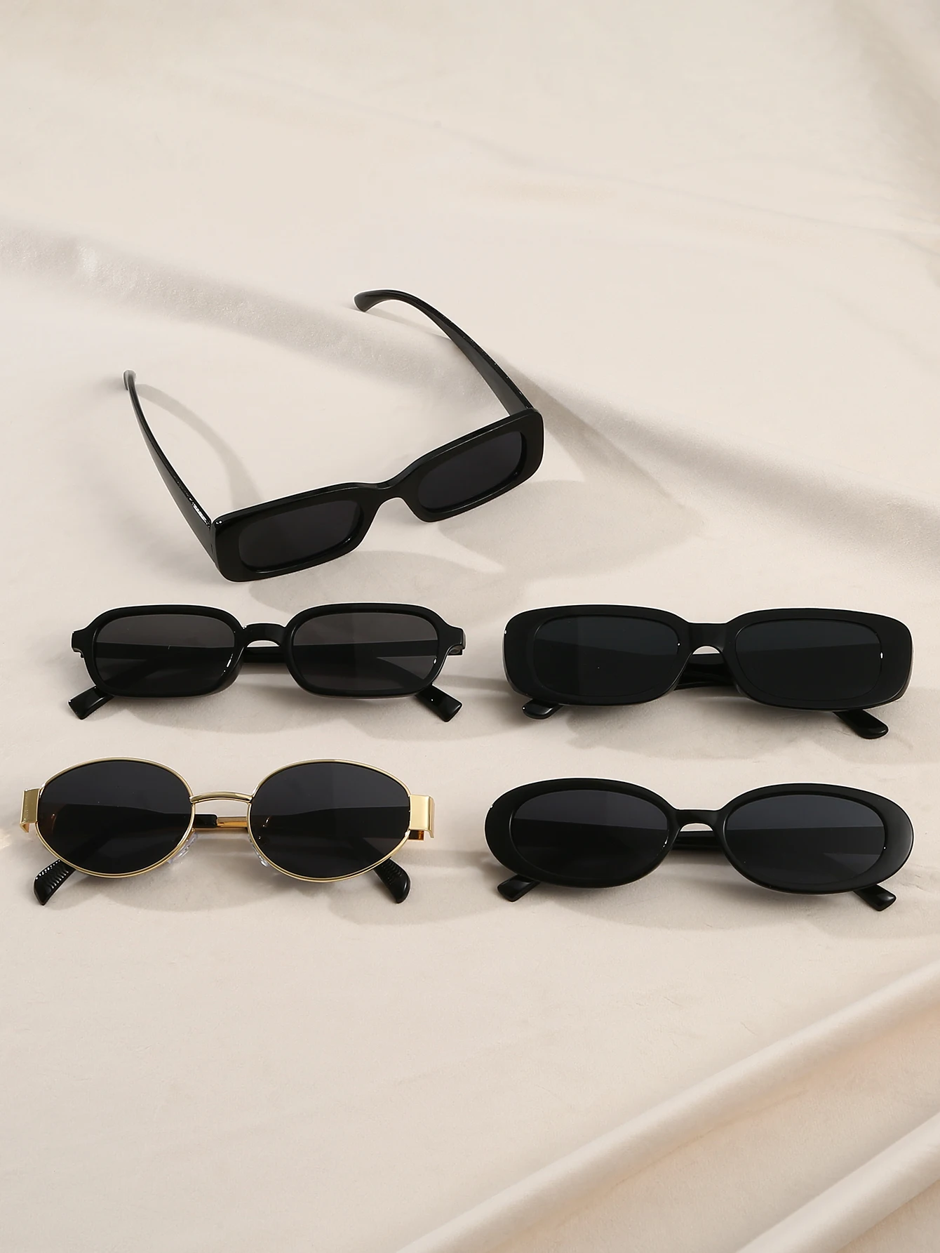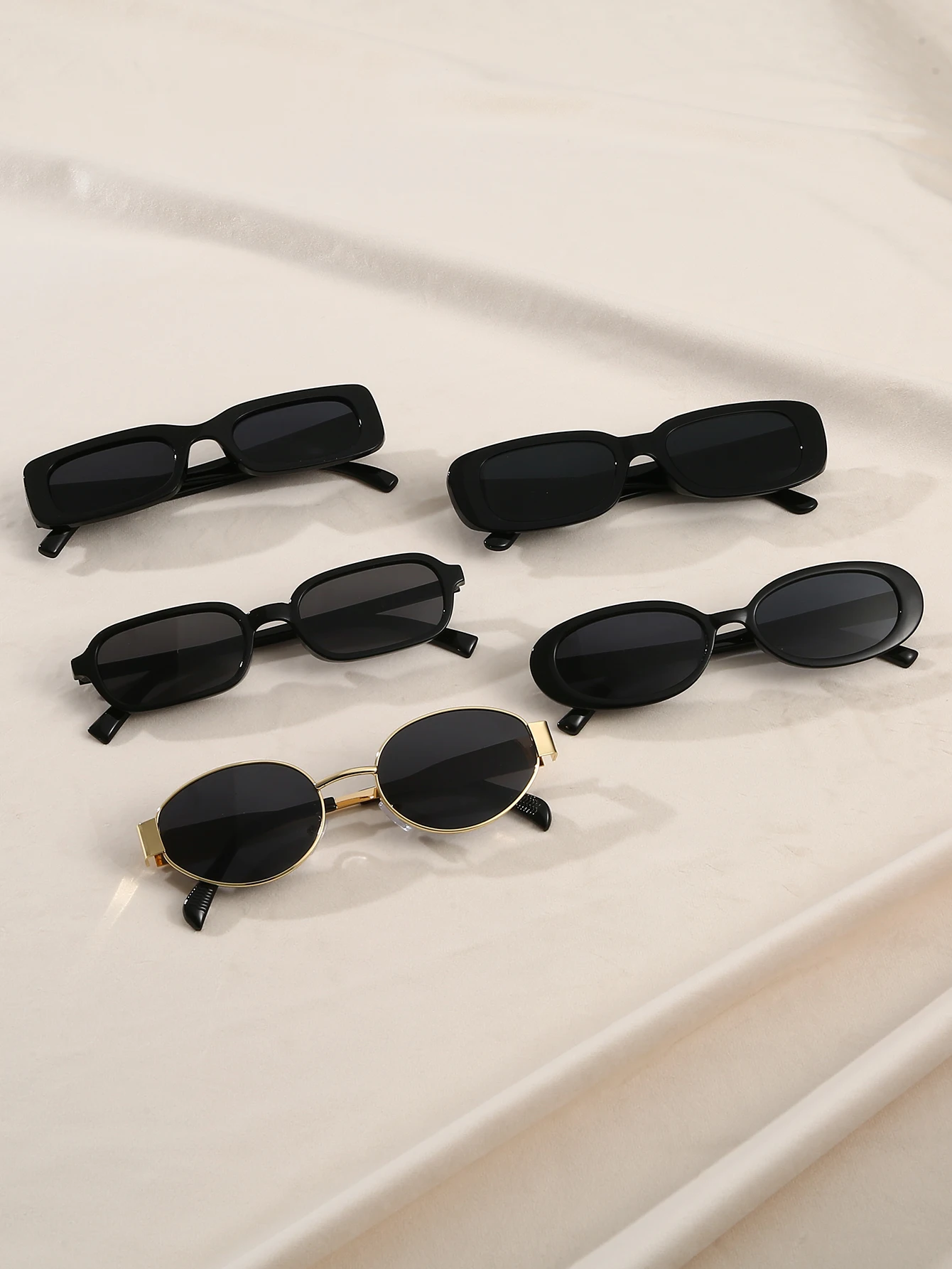 Questo set di 5 occhiali da sole neri retrò offre montature di forme diverse, ideali per uso quotidiano, viaggi e scatti di street photography.