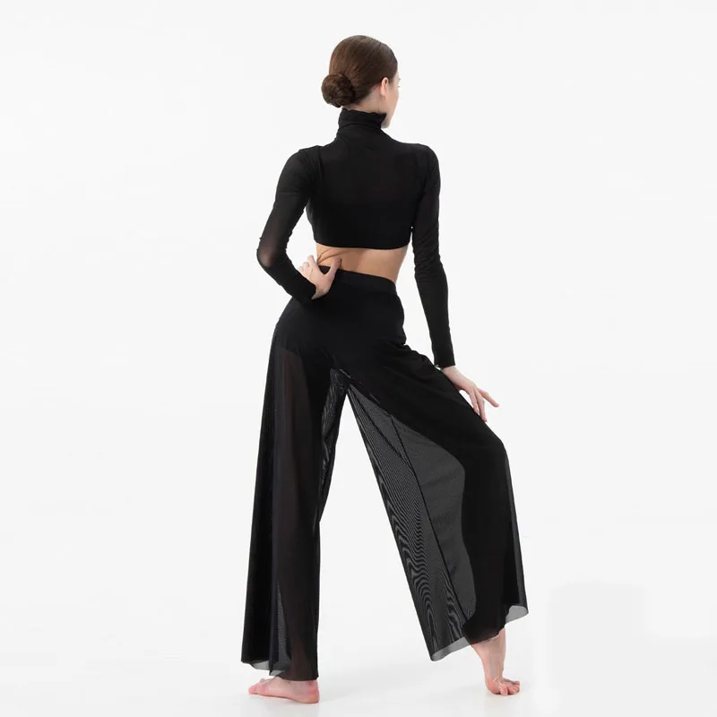 Questo set danza moderna donna con top e pantaloni è ideale per spettacoli, danza contemporanea e lirica. Il design a collo alto valorizza la figura e offre una linea pulita sul palco.